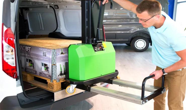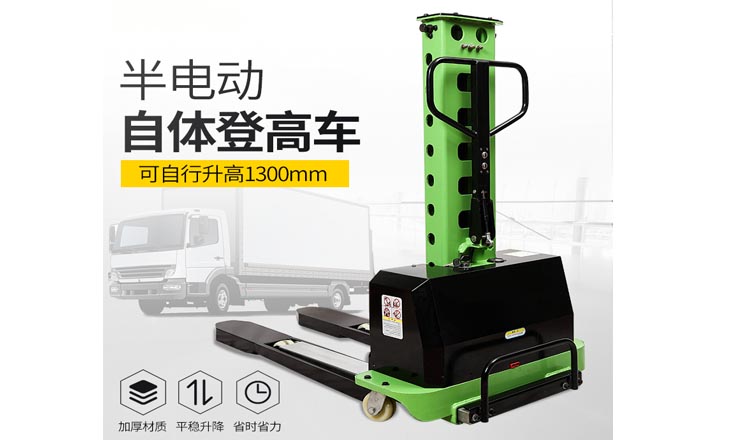整車體積輕巧,半電動設(shè)計,電動升降、人力行走,上下貨車輕松自如。